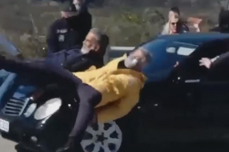 Okupljeni su se u pokušaju da spriječe prolazak vozila, popeli na službeno vozilo.