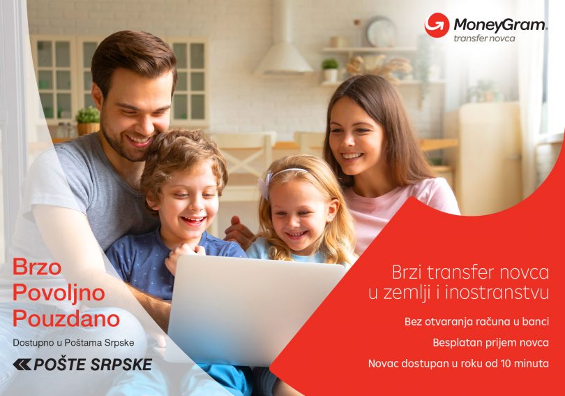 Sarajevo / 5.3.2021. MoneyGram International, Inc., globalni lider u prekograničnom P2P plaćanju i transferima novca, danas je predstavio partnerstvo sa Poštama Republike Srpske čime je ojačao svoje prisustvo u Bosni i Hercegovini. Zahvaljujući tome, klijenti MoneyGrama sada mogu poslati novac porodici i prijateljima na 111 lokacija Pošta Republike Srpske. Ovo partnerstvo odražava strateške ciljeve kompanije MoneyGram da proširi svoju mrežu agenata u najdinamičnijim tržištima novčanih pošiljki u Istočnoj Evropi.
