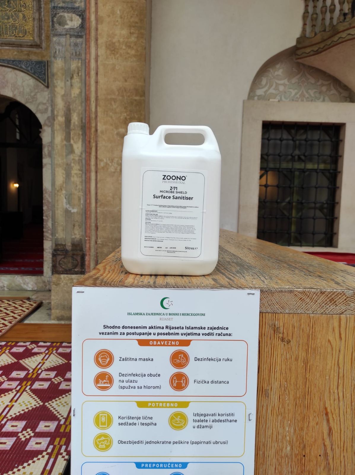 U susret najvećem muslimanskom prazniku, Kurban-bajramu, Islamska zajednica u BiH je zaštitilaunutrašnjost i prateće prostorije Gazi Husrev-begove džamije u Sarajevu od virusa i bakterija sa najnovijom ZOONO® tehnologijom. Na taj način se pridružila svjetskim organizacijama i kompanijama koji koristeći ovu tehnologiju štite svoje klijente, uposlene i članove. Između ostalih ZOONO® tehnologiju koriste Microsoft, Boeing, Amazon, Univerzitet Oxford, kao i mnoge druge renomirane svjetske kompanije i organizacije.