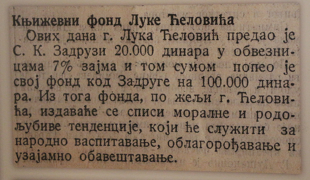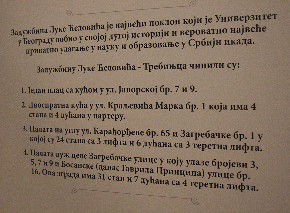 – Veliki je grijeh poništiti zadnju čovjekovu želju, što je, na žalost, svojevremeno, u sprezi sa državom učinio Beogradski Univerzitet. Tužna je istina da je zadužbina Luke Ćelovića Trebinjca privatizovana i danas je najvećim dijelom u vlasništvu kompanije “Nelt”. Nema predaje, vodi se pravni postupak i borba za očuvanje Ćelovićevog zavještanja – rekao je Ratković.