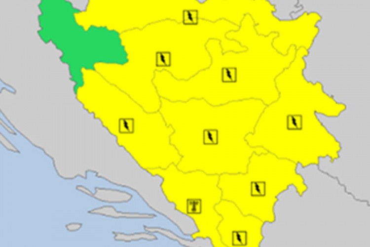 SARAJEVO – Meteoalarm je izdao žuto upozorenje za veći BiH zbog grmljavine, a za područje Mostara i zbog ekstremno visoke temperature vazduha.